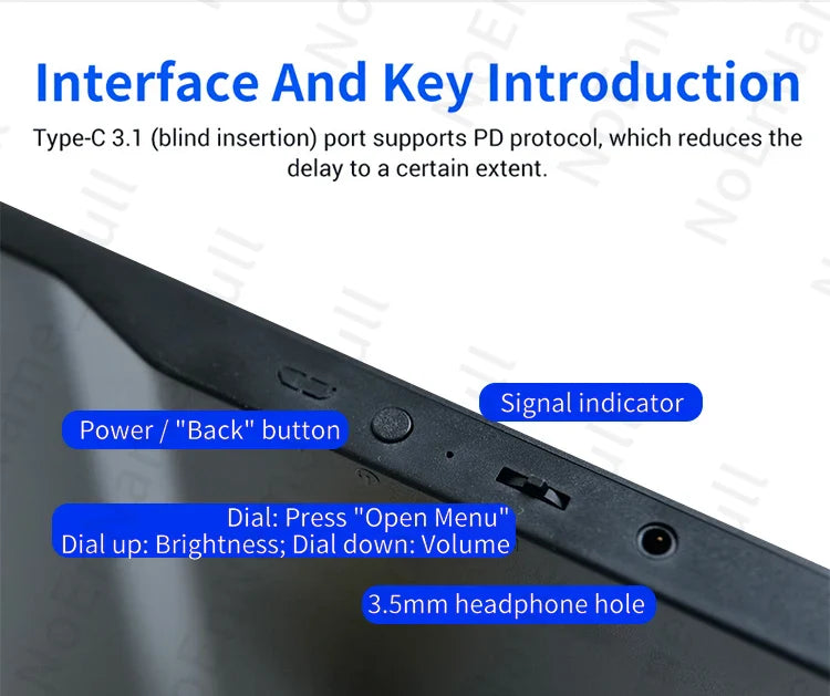 5V-3A adapter to connect the screen via the Type C to USB cable.