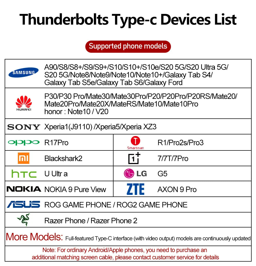 Compatiable for the Thunderbolts Phone and Laptop viaTYPE Cconnection