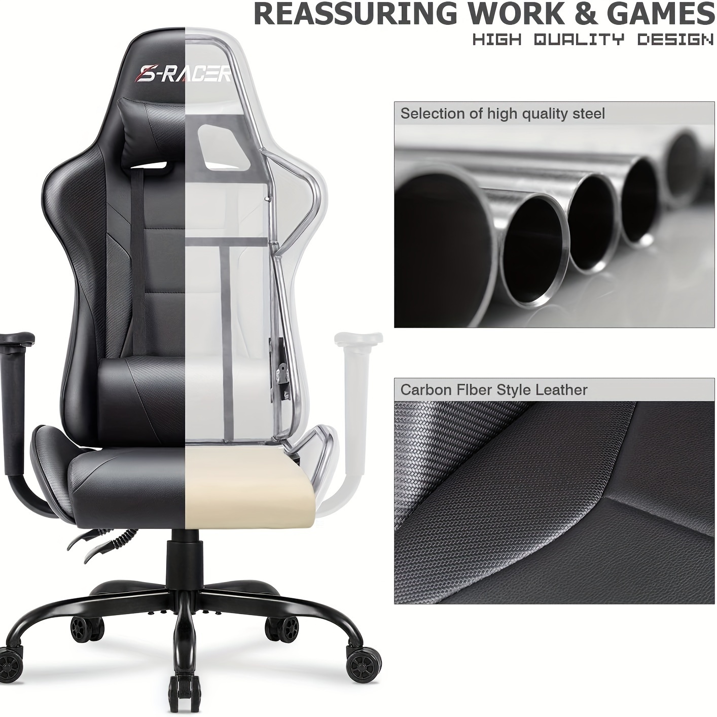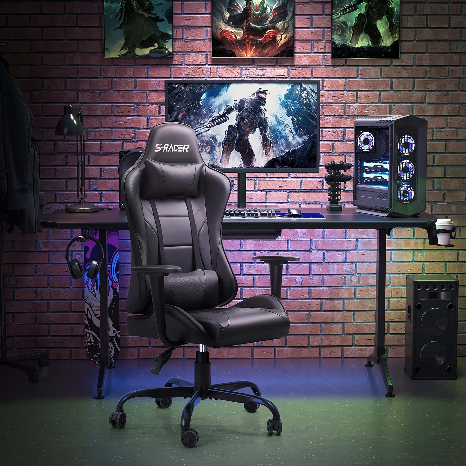 1pc Gaming Chair Office Chair High Back Racing Computer Chair PU Leather Adjustable Seat Height Swivel Chair Ergonomic Executive Chair With Headrest, Black