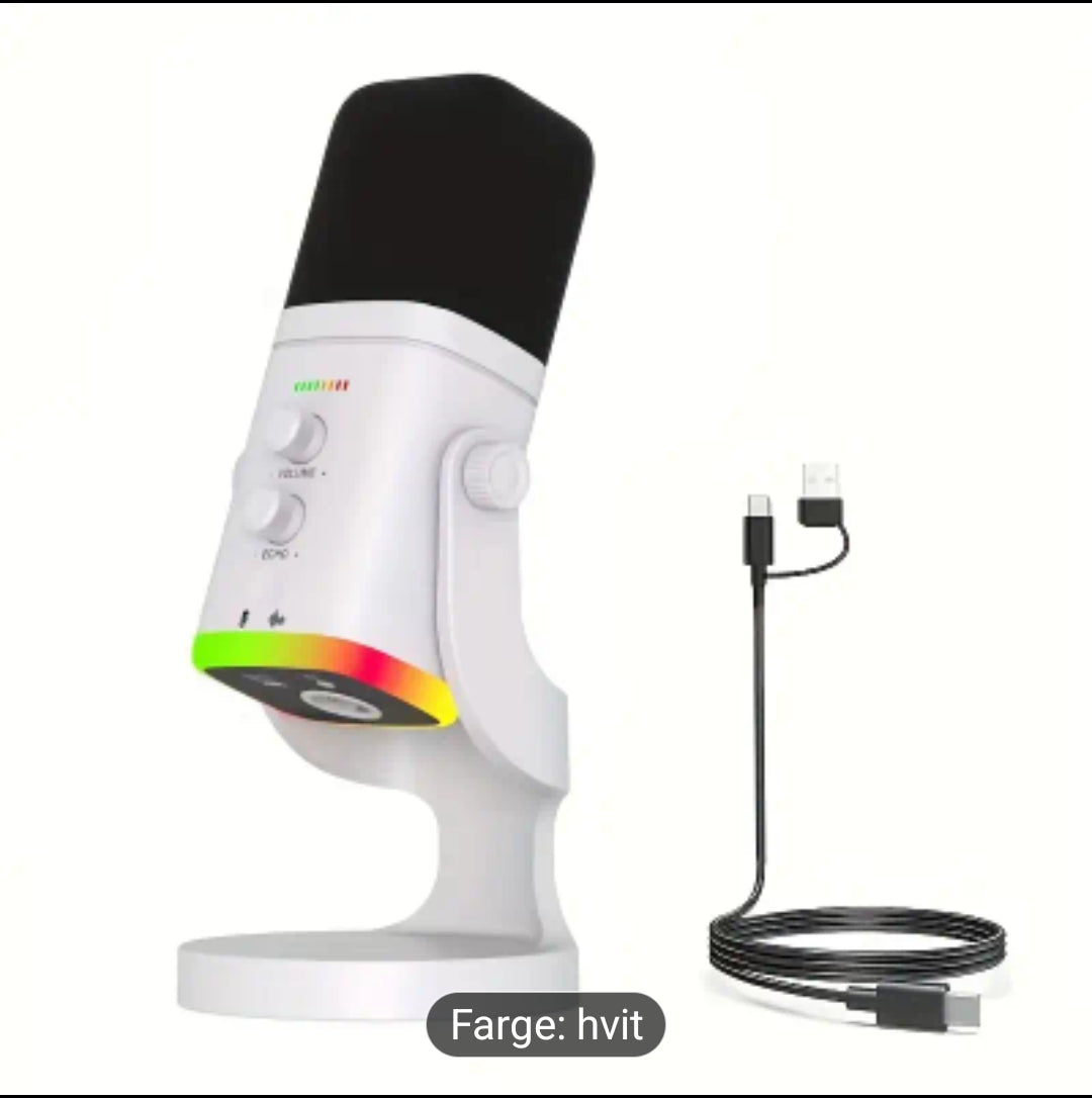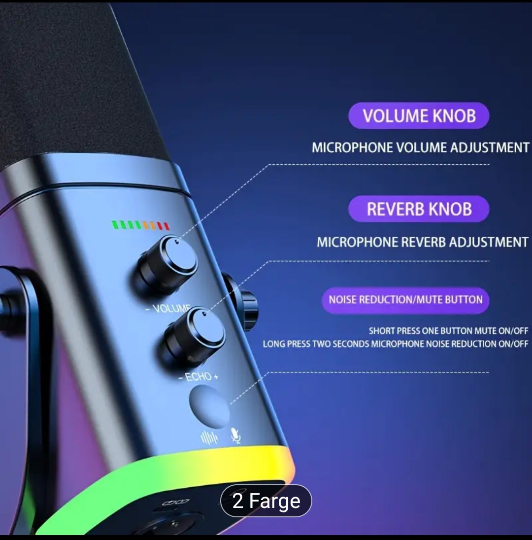 EXLR/USB Dynamisk Mikrofon for Streaming & Gaming, RGB-lys, Dempknapp, Hodetelefonkontakt, Skrivebordsstativ, Ideell PC-mikrofon til YouTube, Sang og Opptak