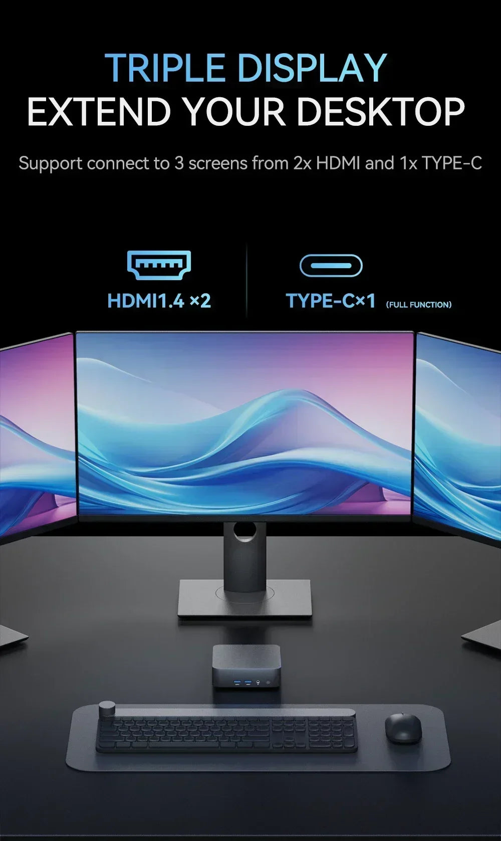 • Windows 11 Pro Operating System :This mini PC comes preloaded with Windows 11 Pro, ensuring a smooth and up-to-date operating system. This allows for easy navigation and operation, making it perfect for both novice and power users.