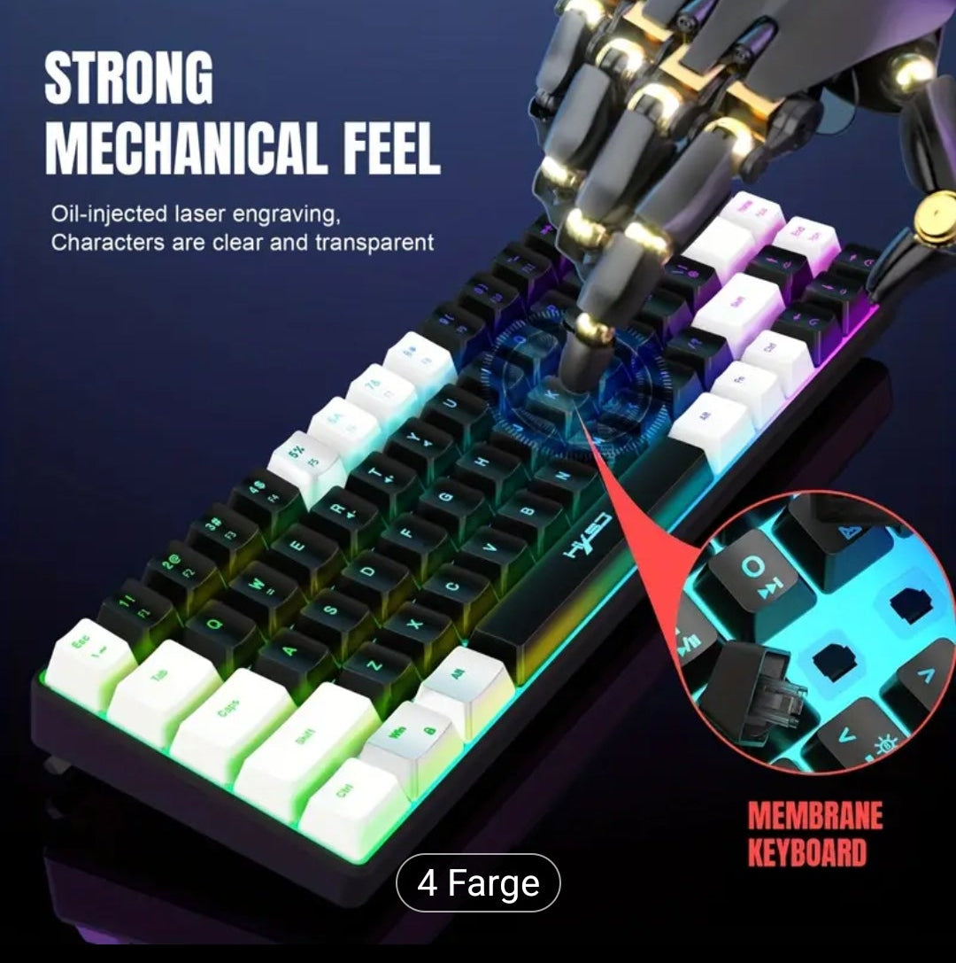 HXSJ Ny tynn film kablet spilltastatur USB-C-nøkkel Kabelseparasjon 68 nøkler RGB-bakgrunnsbelysning Egnet for hjemmespill, kontor, svart og hvitt