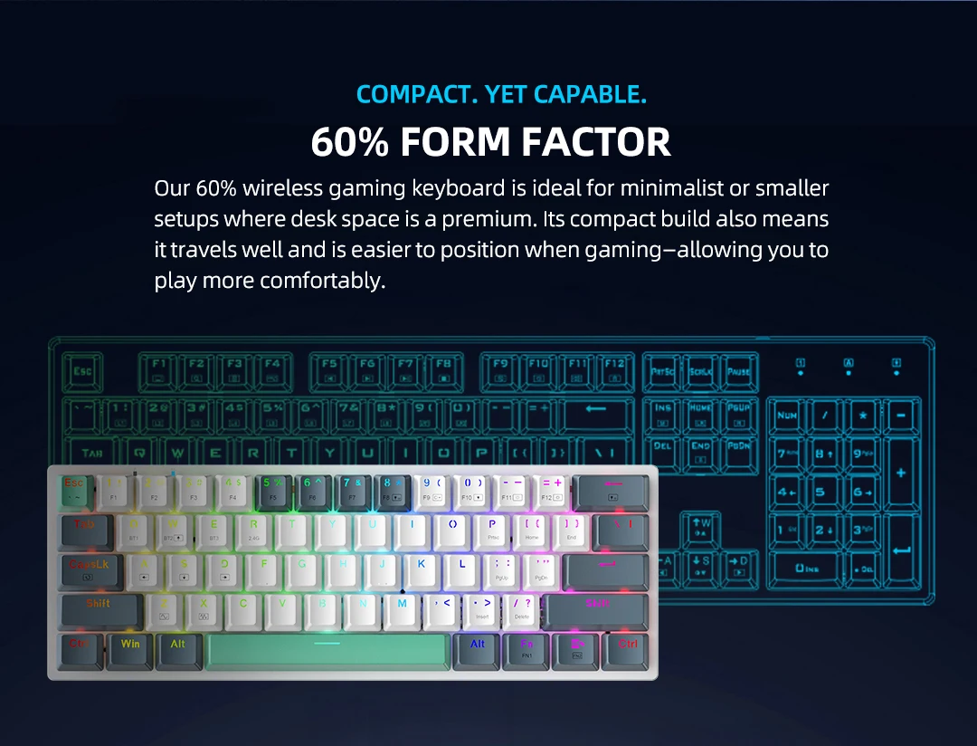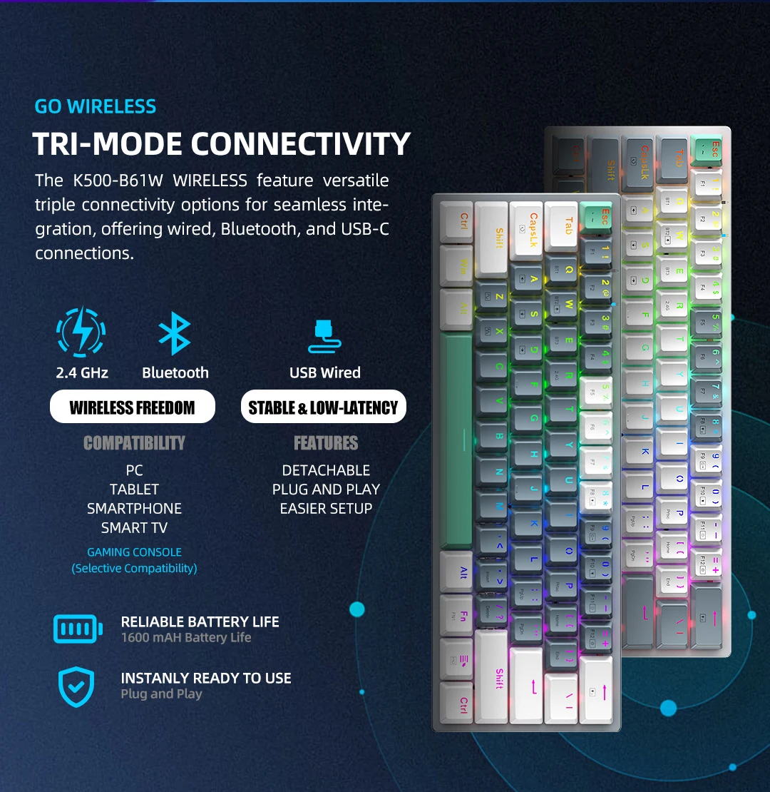 MACHENIKE K500-B61W Mechanical Keyboard 60% Tri-mode ANSI Latam-ES Layout Wireless Hot-swap Gaming Keyboard For PC Gamer