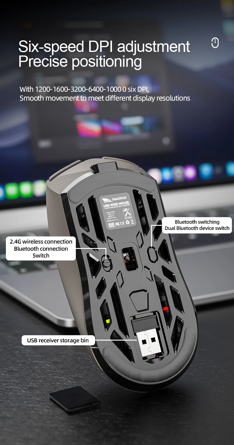 smailwolf RS8 Wireless Bluetooth mouse three-mode RGB lighting 10000DPI lightweight macro programming game mouse rechargeable