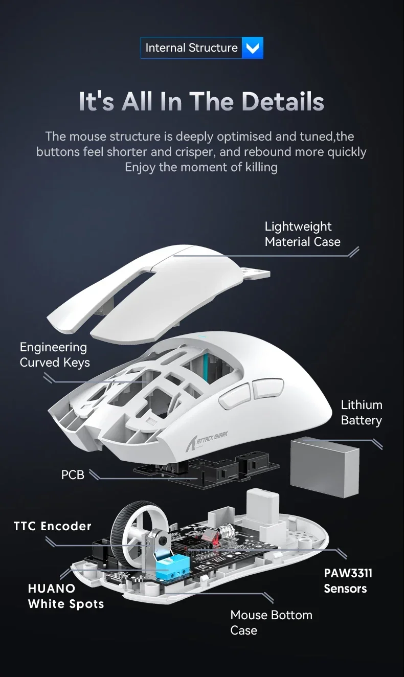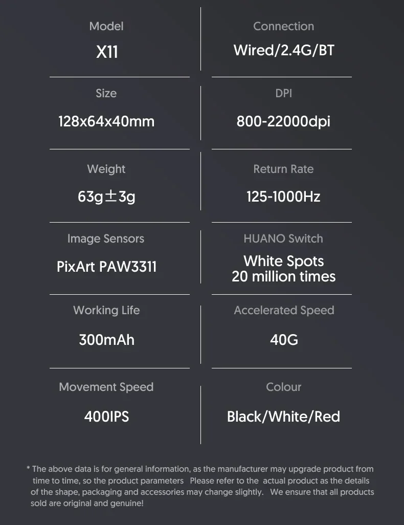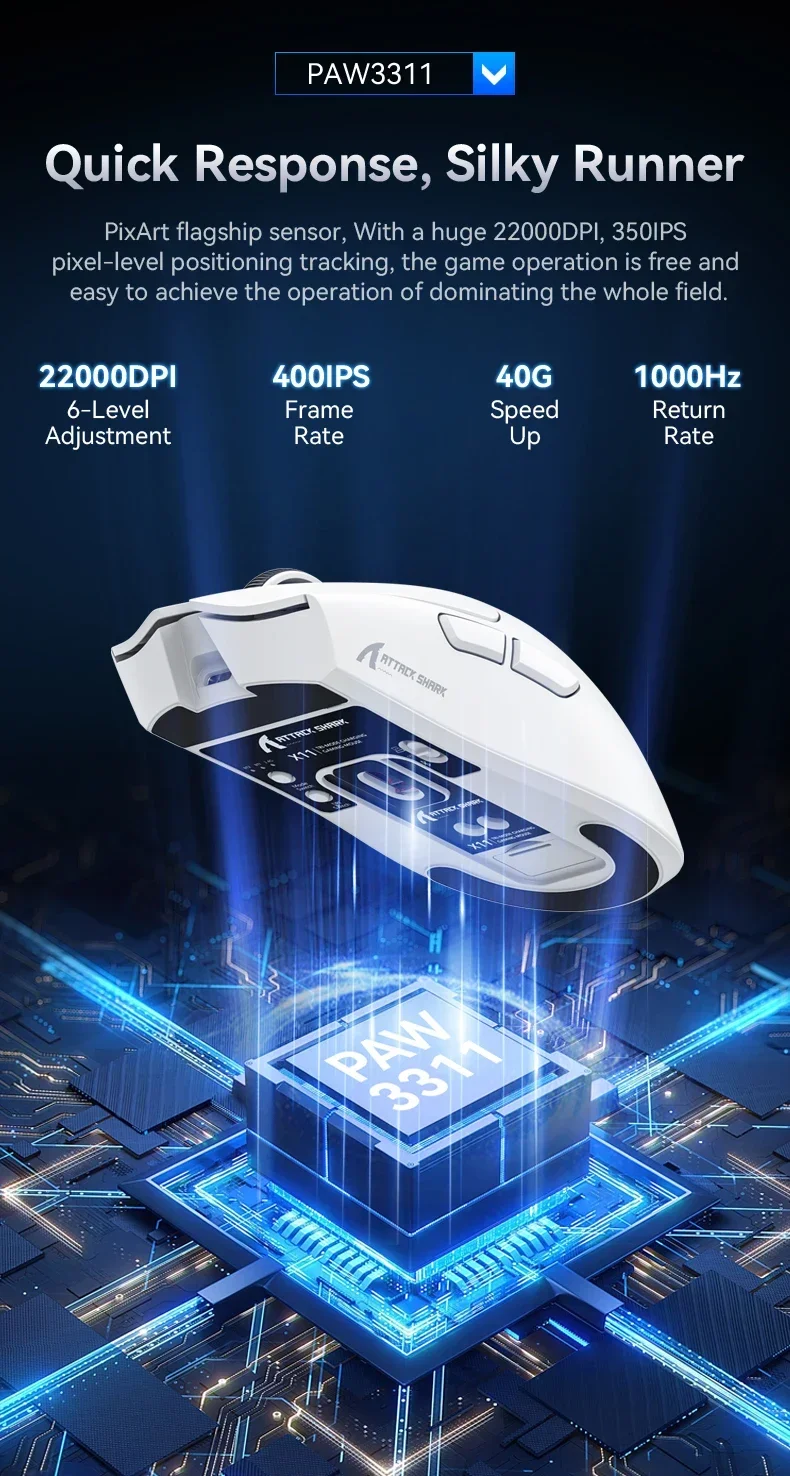 Sensor mechanism: Pixart 3311 (12000 DPI|300 IPS|35G)