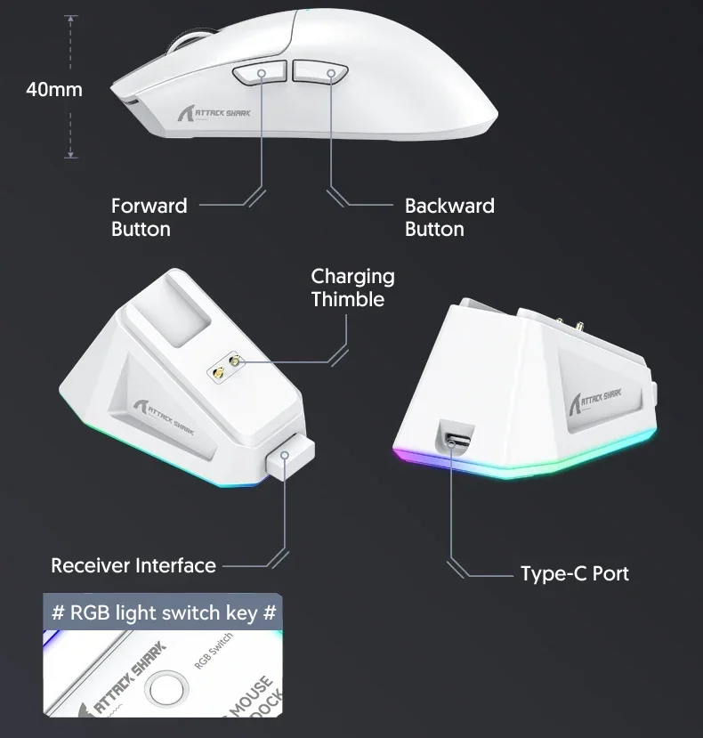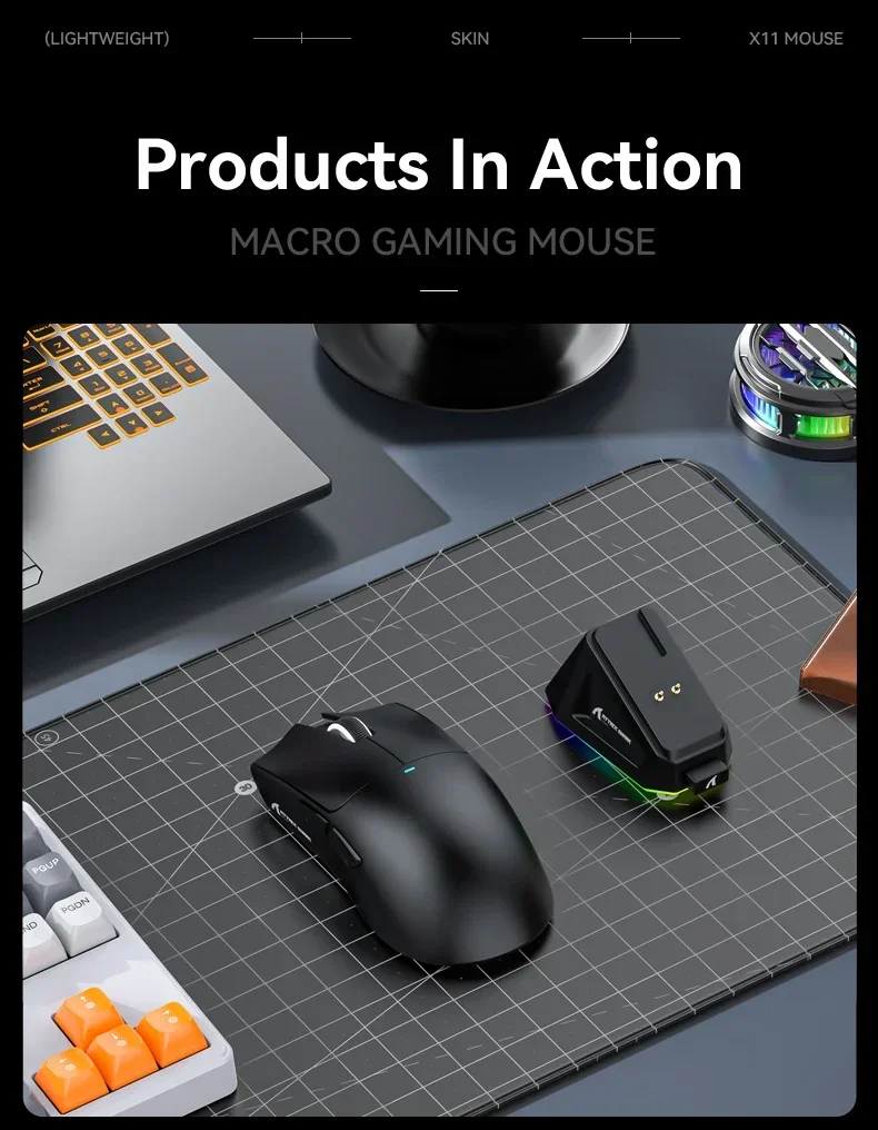 Wireless Attack Shark X11 Tri-Mode Bluetooth/2.4G/wired, game mouse with PAW3311 RGB magnetic charging station