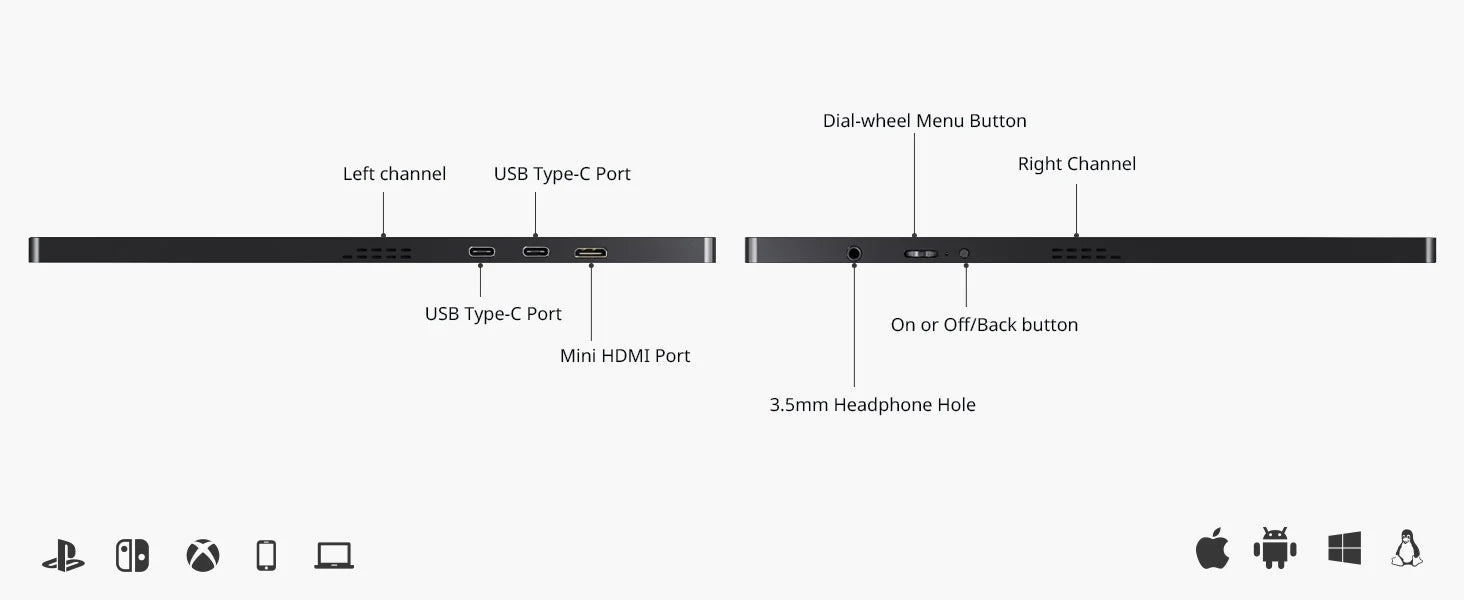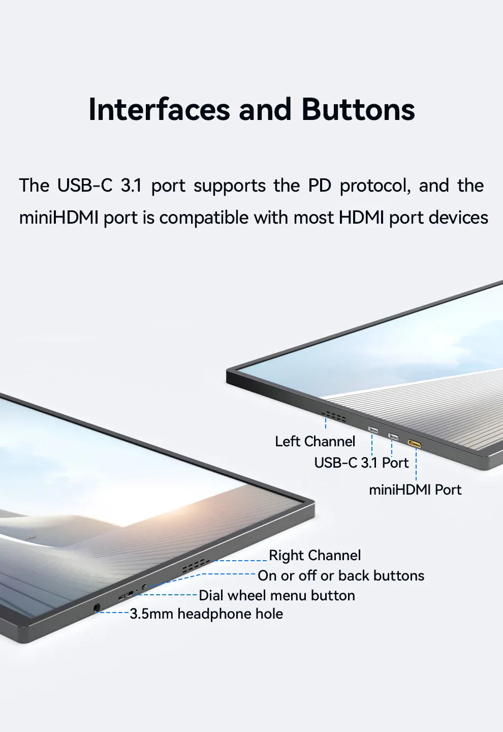 XIANWEI 18.5 inch Portable Monitor Touch 100%sRGB 100Hz External Screen Gaming Office Display For Switch Phone Laptop Xbox PS4/5