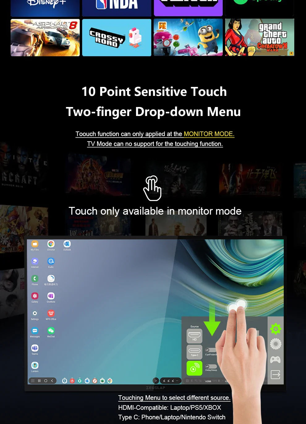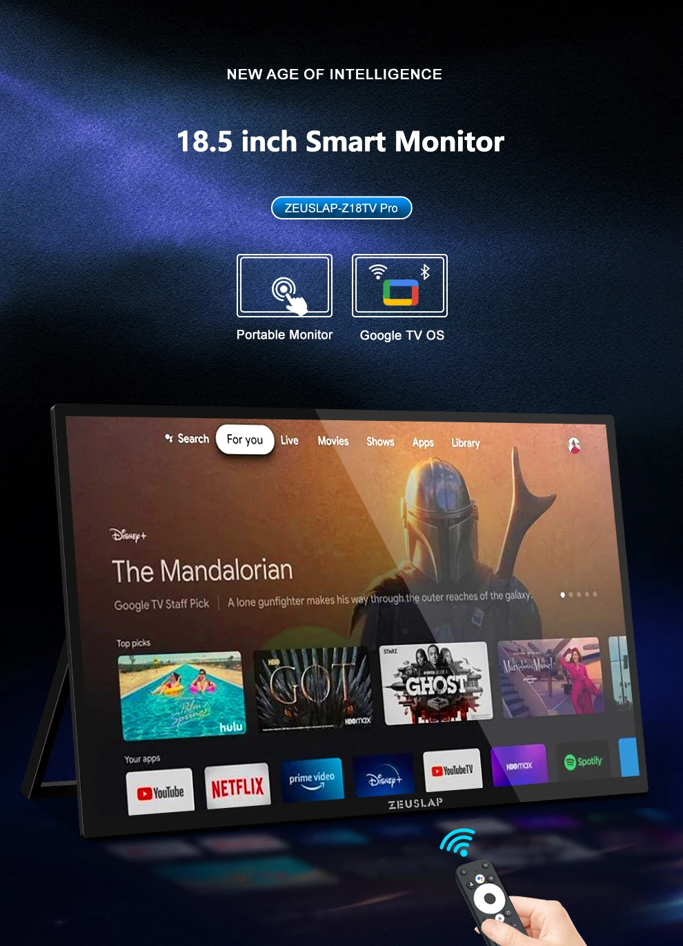 Zeuslap 18.5 inch Smart TV Portable Touch Screen Monitor with Google TV For Mini PC Laptop Phone Xbox PS4 PS5 Switch