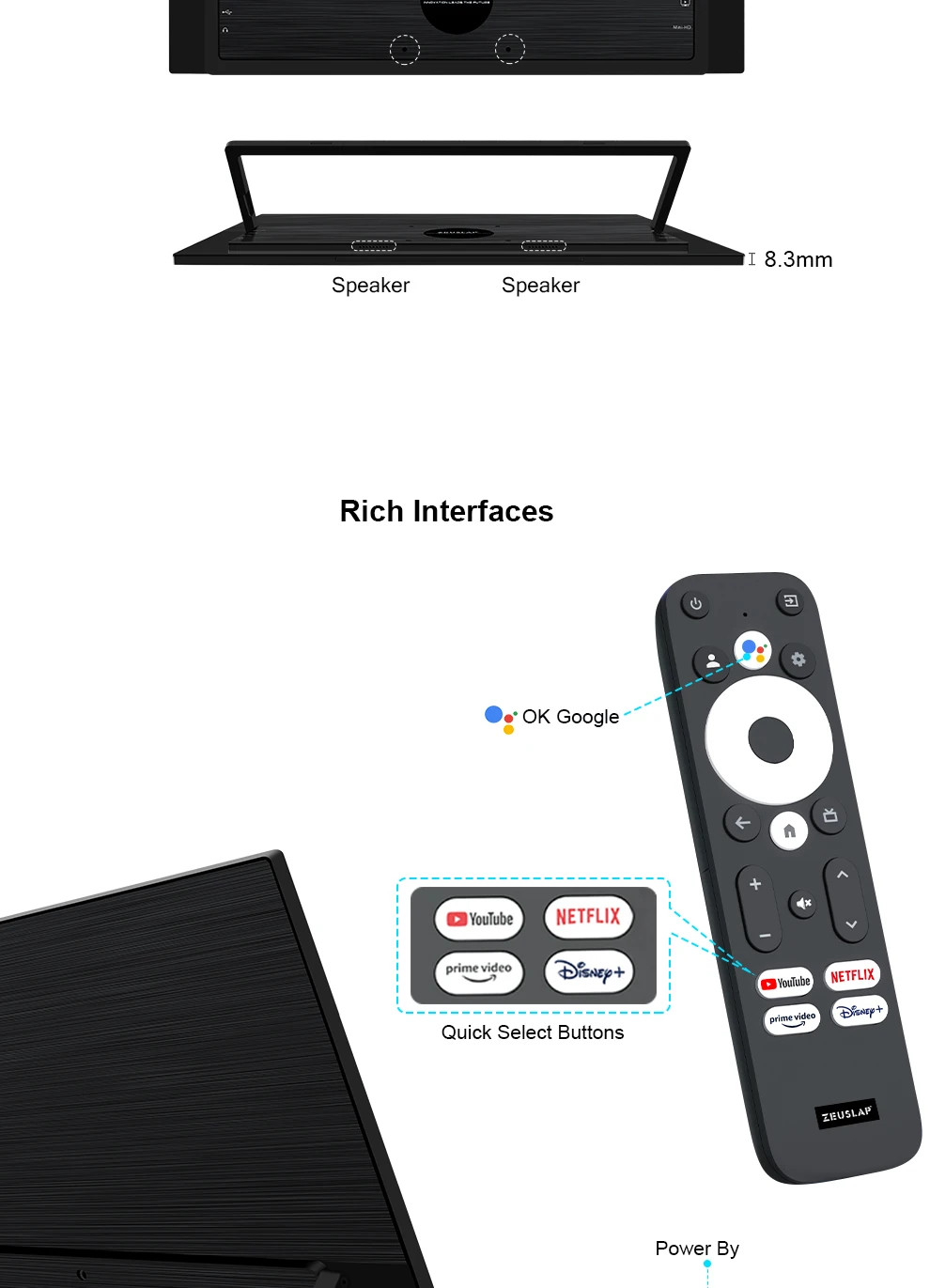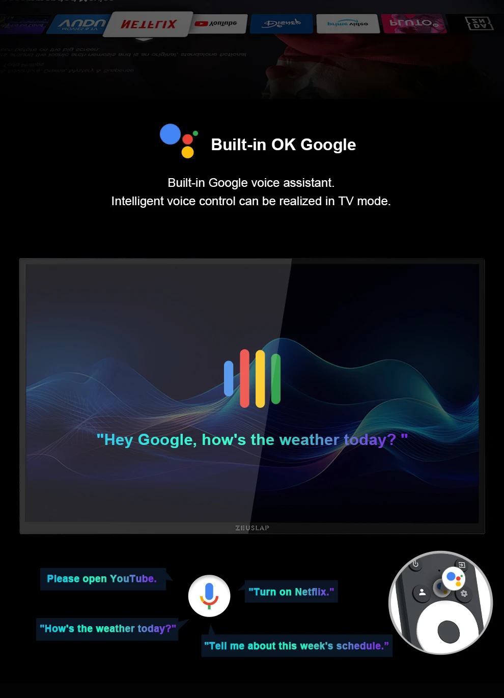 3.Built-in google voice assistance for a smart voice control at TV mode.