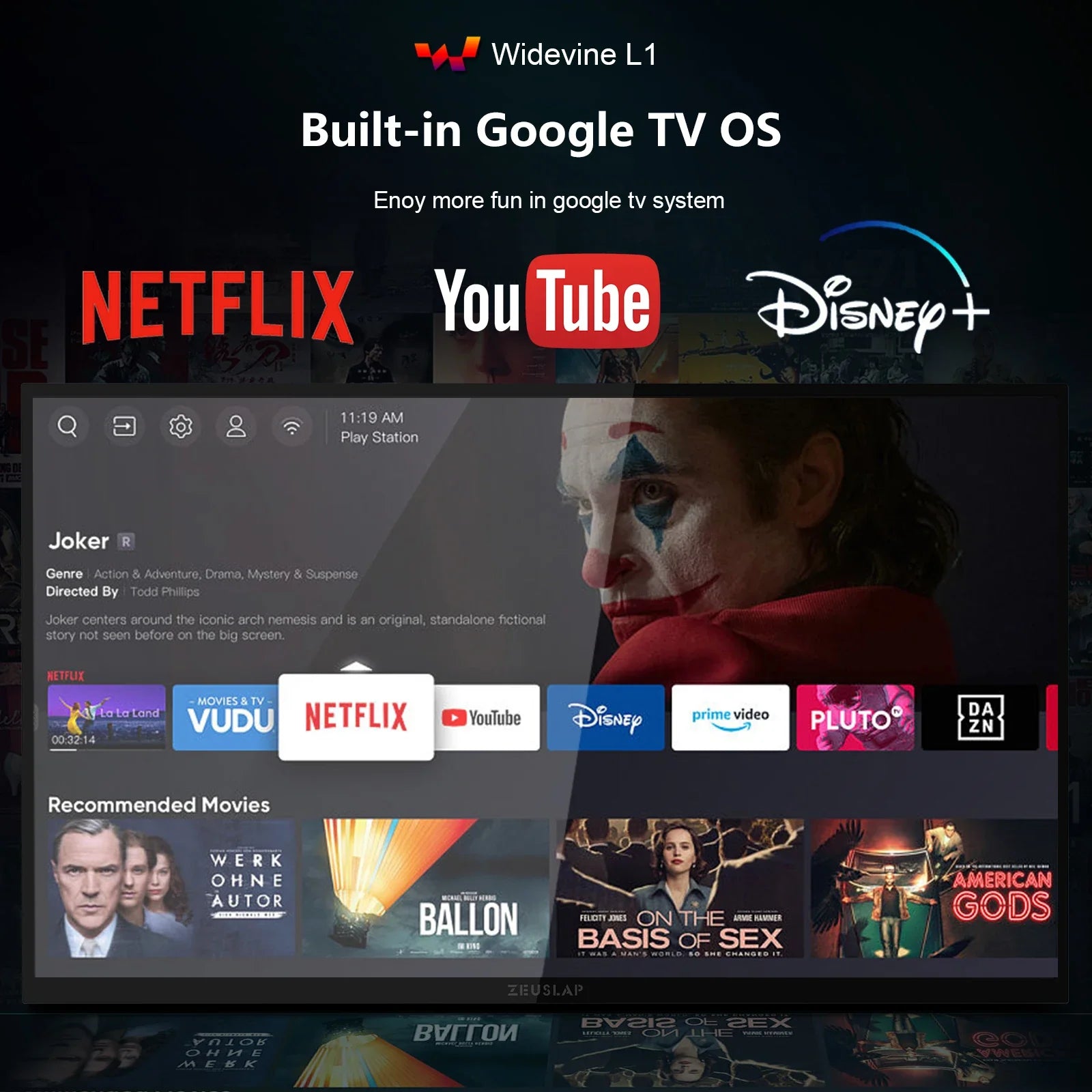 1.Built-in Google TV OS with Widevine L1 licence and support Netflix HD video playing.