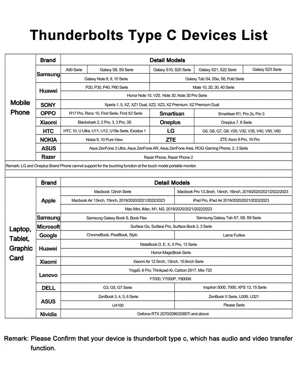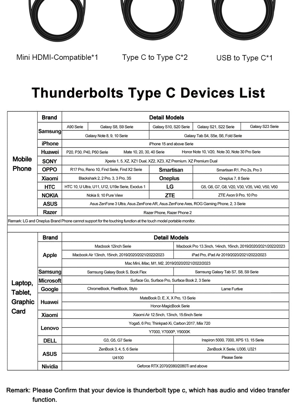 2. USB to Type C cable to connect laptop usb port and the monitor middle type c data port.