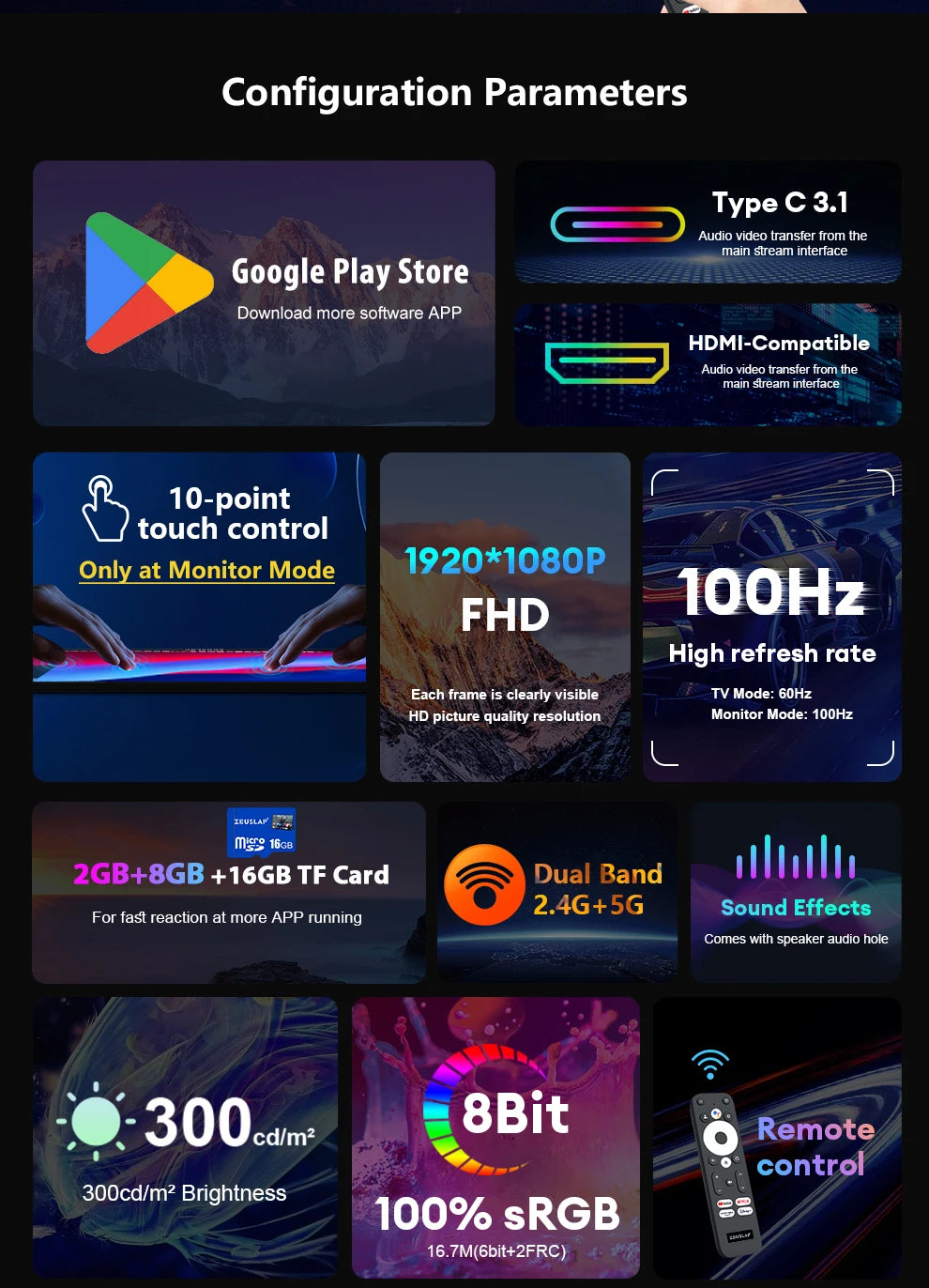 6.18.5inch 1920*1080P full HD resolution IPS panel with HDR 10+ assure a high quality video display with more details.