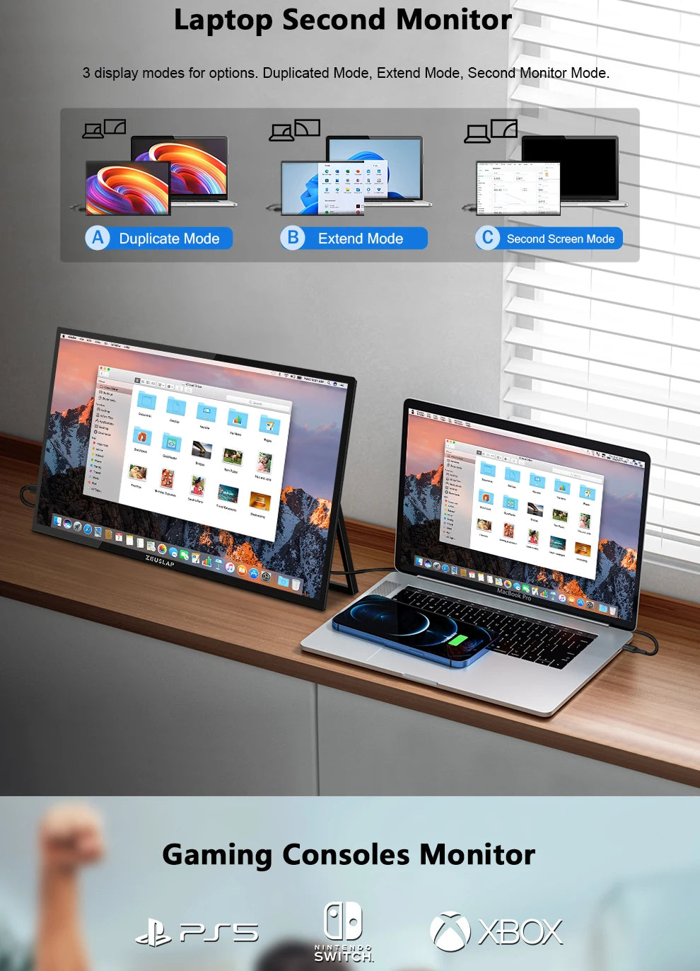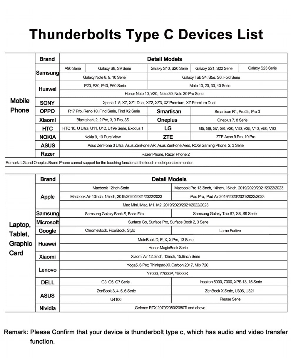 2. USB to Type C cable to connect laptop usb port and the monitor middle type c data port.